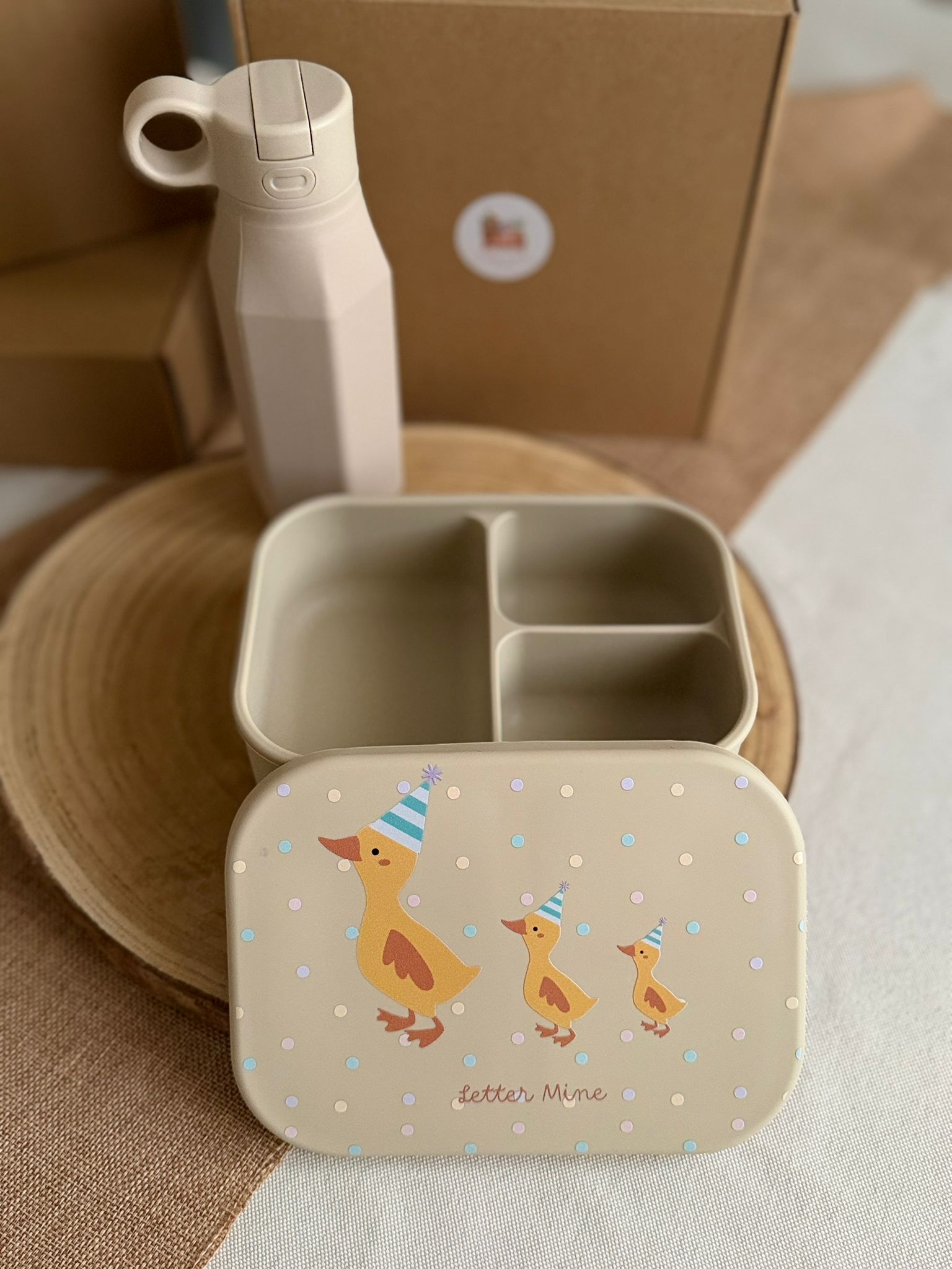Tupper + botellita de silicona alimentaria, sin sustancias dañinas, blanditos pero resistentes y súper prácticos para el día a día.